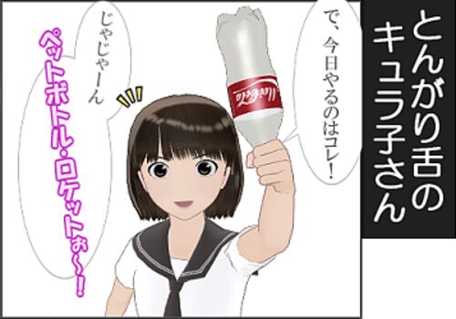 MMD漫画「とんがり舌のキュラ子さん」 8話 (クリックするとニコニコ静画へジャンプします) キュラ子さん8話目できました。 前回手に入れたコーラの空きボトルで、ペットボトル・ロケットぶっ飛ばす話。 なんかほんと、 中学・高校の頃って友だちといると…